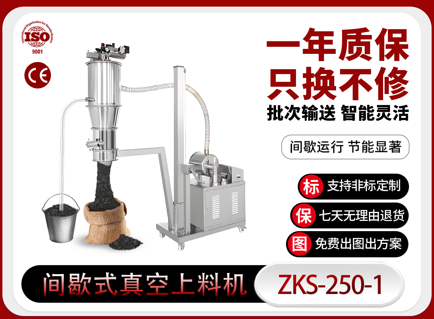 真空上料機:潔凈生產線的 “智能輸送利器”在制藥、食品、精細化工等行業的生產鏈中,物料輸送的潔凈度、效率與成本,是決定產能與合規性的核心環節 —— 真空上料機,正是為破解傳統人工 / 機械上料的粉塵污染、效率低下等痛點而生的智能化設備。它依托負壓真空吸附原理,通過全密封管路將顆粒、粉末等物料,從料倉、包裝袋平穩轉運至混合、制粒等工序設備:全程物料不與外界接觸,既避免了粉塵泄漏造成的環境與物料污染,更契合 GMP 等行業潔凈生產標準,是高要求生產線的 “潔凈保障”。相比傳統方式,它的優勢直擊生產痛點:自動化程度拉滿,一鍵啟動即可完成上料、輸送、卸料全流程,單臺設備可替代 2-3 名人工,大幅削減人力成本與操作誤差;密封式設計不僅杜絕粉塵飛揚的安全隱患,更減少物料損耗,尤其適配昂貴精細物料的轉運;同時通用性極強,無論是流動性顆粒還是易結塊粉末,均可通過參數調試穩定輸送,適配多品類生產線的靈活需求。更值得關注的是,它結構精簡易維護,日常清潔、部件更換無需復雜操作,能有效降低運維成本;精準的輸送量控制,更可與后續工序無縫銜接,助力生產線實現高能效聯動。從保障潔凈生產合規,到壓縮人力與物料成本,真空上料機既是高要求生產線的 “剛需裝備”,更是助力企業實現智能化升級的實用利器 —— 讓物料輸送更潔凈、更快捷,為你的生產鏈注入穩定動力。